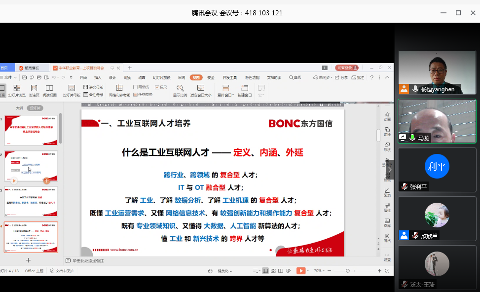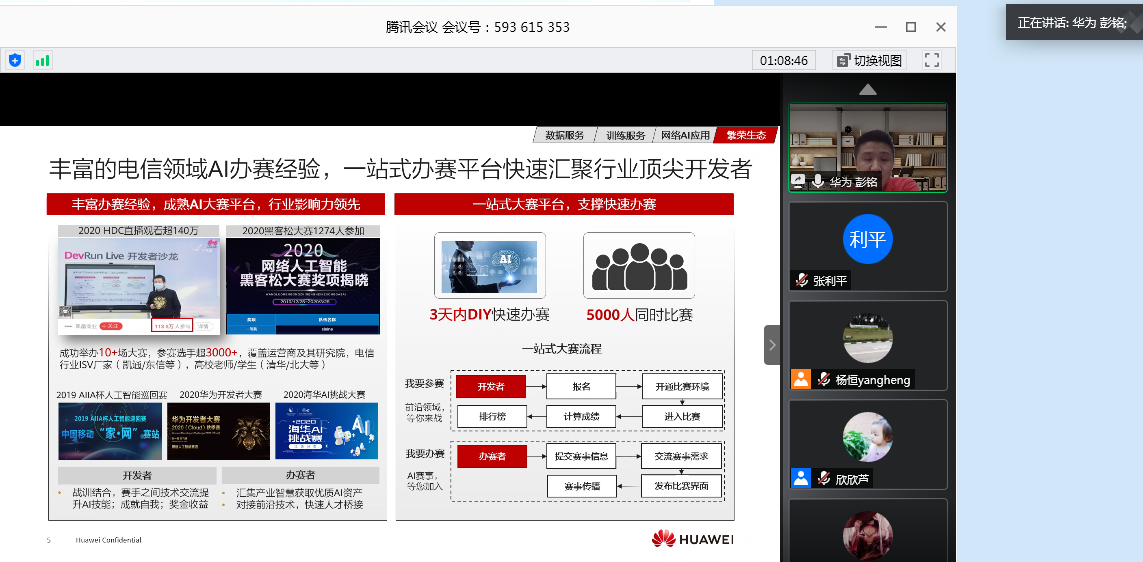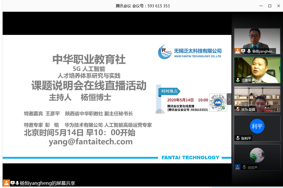 由中華職教社總社立項,華為、海爾、東方國信、江蘇暢動(dòng)、無(wú)錫泛太聯(lián)袂推出的《5G與人工智能、工業(yè)互聯(lián)網(wǎng)、智能家居與物聯(lián)網(wǎng)、智慧體育人才培養體系研究與實(shí)踐》課題已正式進(jìn)入申報階段。2020年5月14、15 兩日,連續四個(gè)子課題四場(chǎng)線(xiàn)上說(shuō)明會(huì )通過(guò)云端如期進(jìn)行。說(shuō)明會(huì )由無(wú)錫泛太科技有限公司組織,華為、東方國信和海爾的專(zhuān)家分享了他們各自在專(zhuān)業(yè)領(lǐng)域的成果及對課題的支持方向、推進(jìn)措施,還跟來(lái)自全國各地的老師們進(jìn)行了互動(dòng)交流。智慧體育因參與老師很少,只做了互動(dòng)交流。