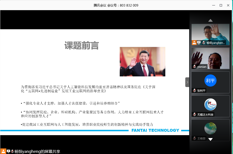 中華職業(yè)教育社陜西省分社王彥平主任,甘肅省分社尹萬(wàn)年副主任參加了線(xiàn)上說(shuō)明會(huì )并做重要講話(huà),他們都認為中華職教社這個(gè)課題意義重大!對職業(yè)院校在人工智能、工業(yè)互聯(lián)網(wǎng)、物聯(lián)網(wǎng)等新技術(shù)人才培養探索有巨大的引領(lǐng)和指導作用。他們將組織院校積極參與,抓住這次機會(huì ),把企業(yè)最前沿的技術(shù)、最新的人才培養理念帶進(jìn)校園,助力院校人才培養體系升級。