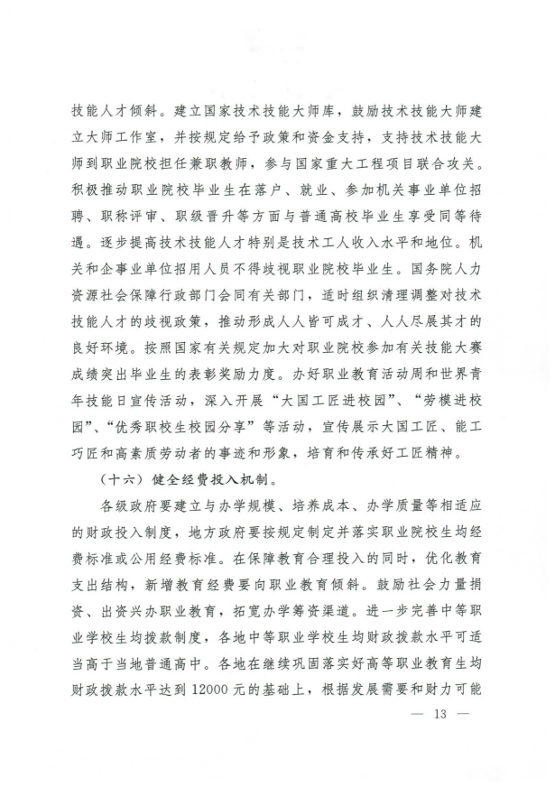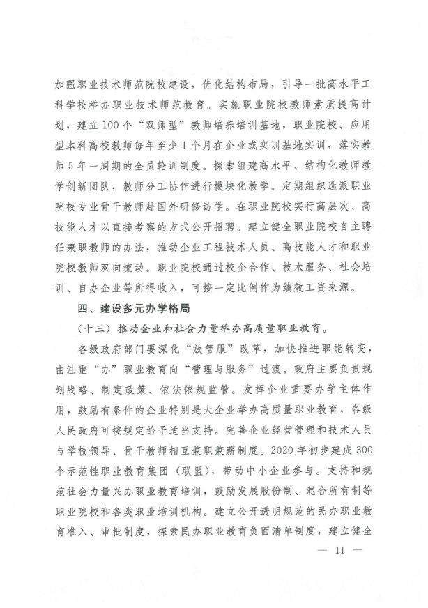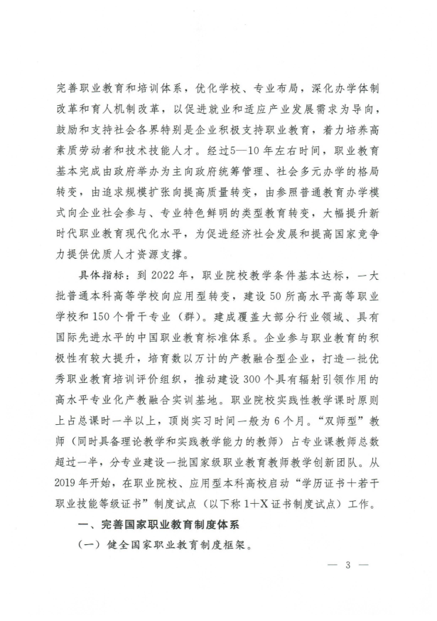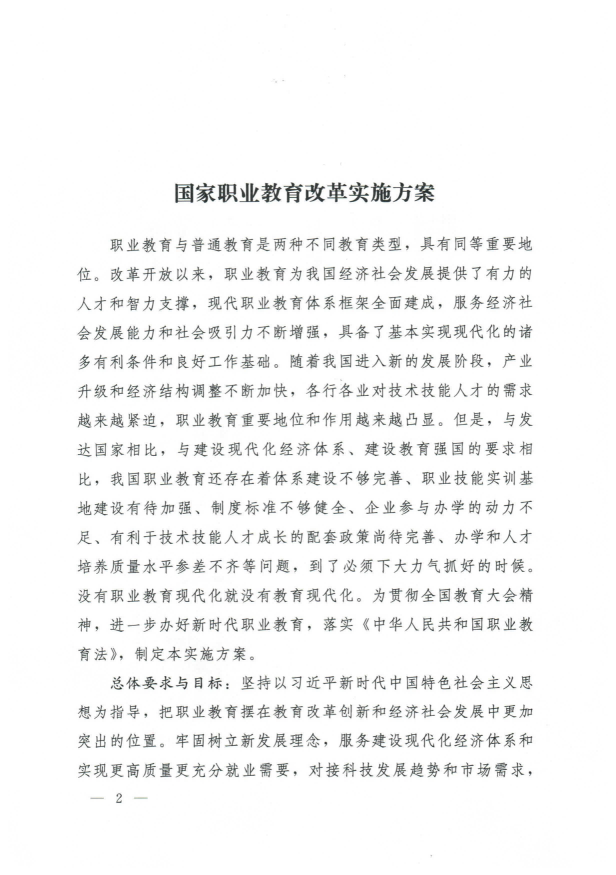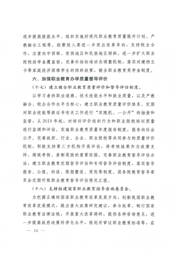 國務(wù)院關(guān)于印發(fā)國家職業(yè)教育改革實(shí)施方案的通知
